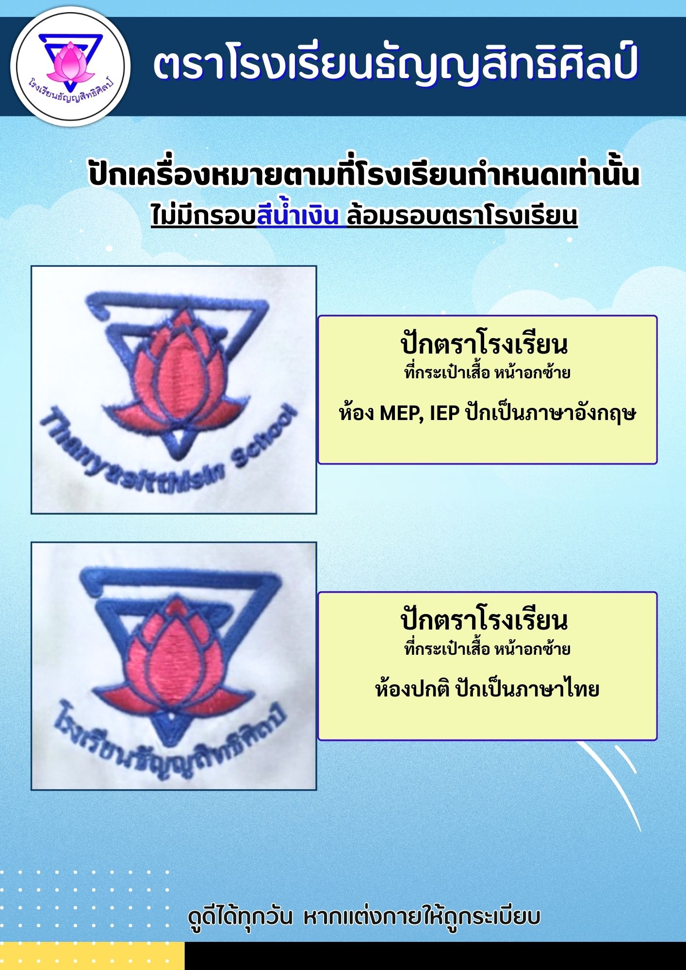 การปักตราโรงเรียนธัญญสิทธิศิลป์ที่ถูกระเบียบ