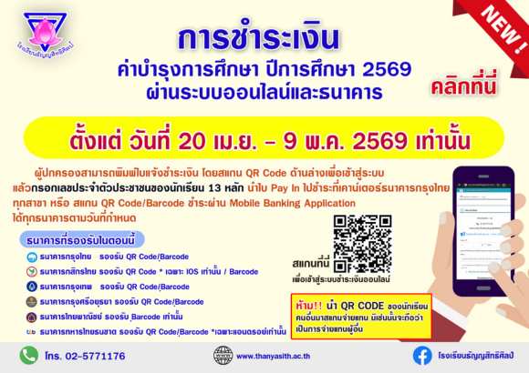 ประกาศ เรื่อง ผลการสอบคัดเลือกนักเรียนย้ายเข้ามาเรียน ปีการศึกษา 2569 18 มี.ค. 69