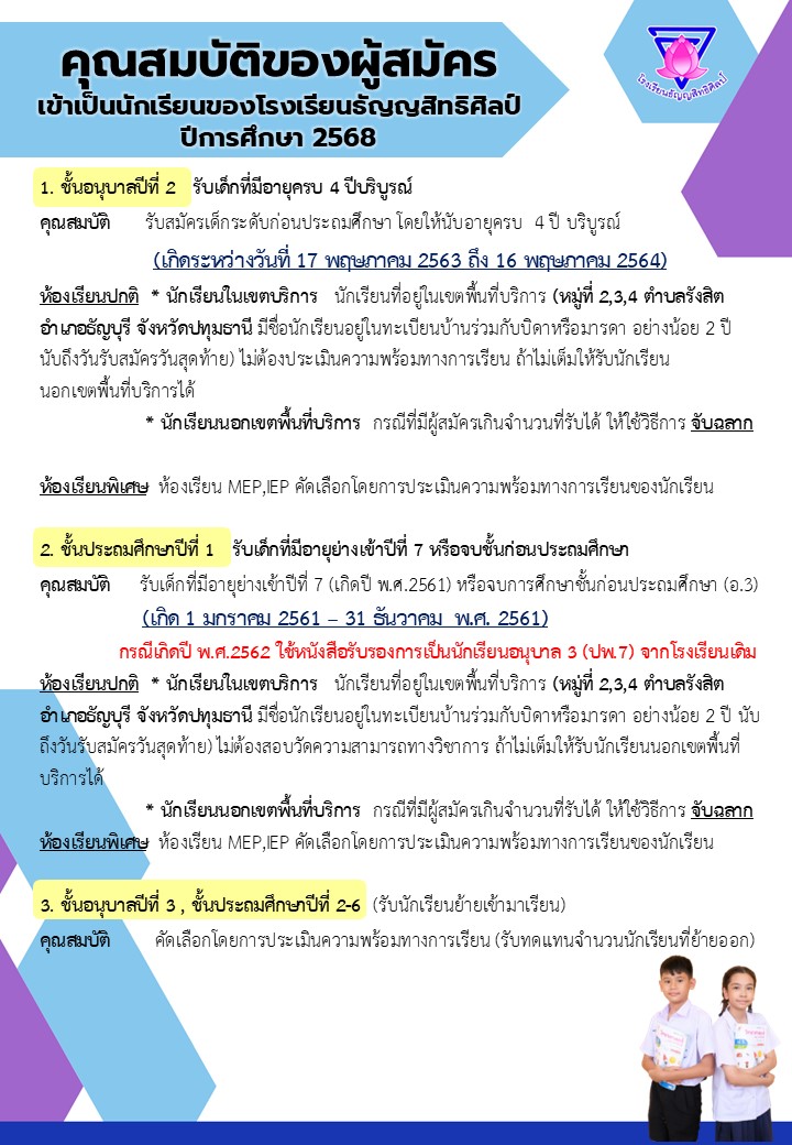 คุณสมบัติการรับนักเรียนใหม่