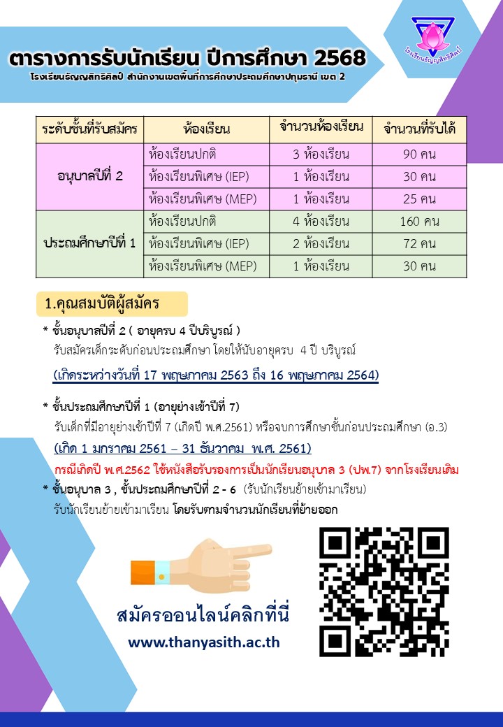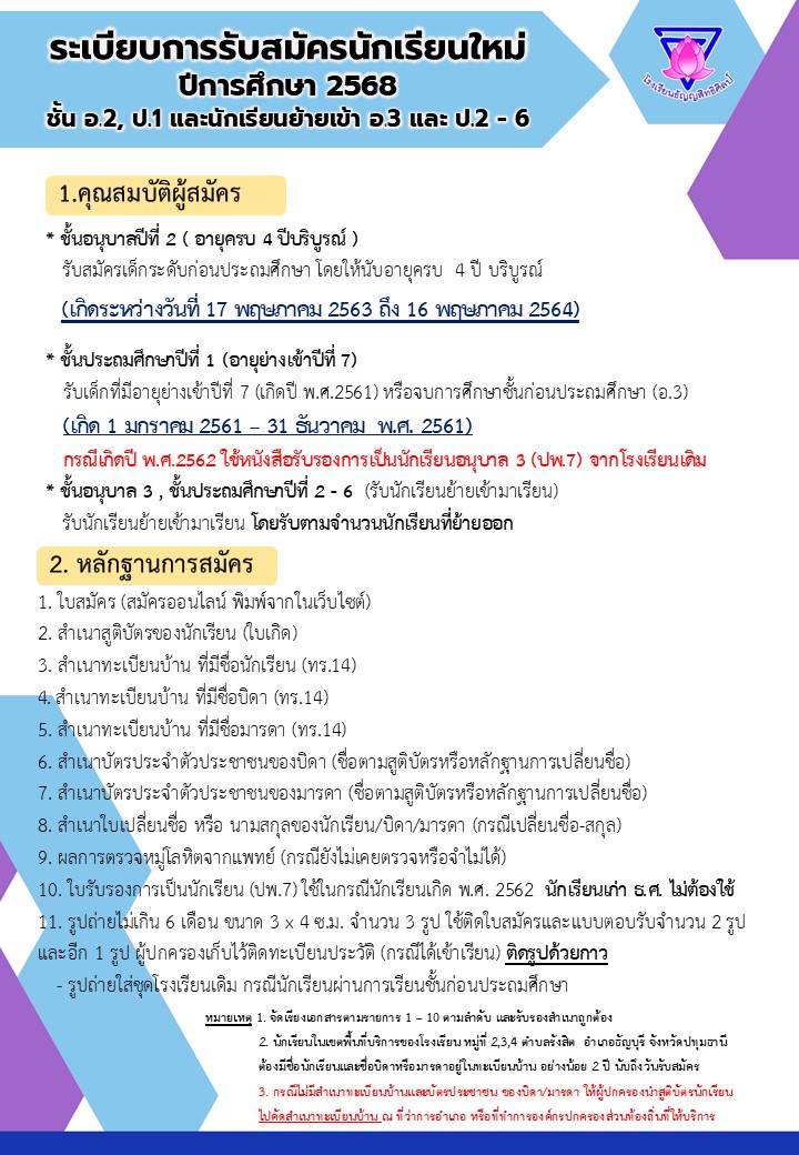 ระเบียบการรับนักเรียนใหม่ 2568