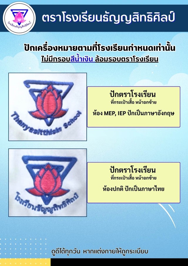 การปักตราโรงเรียนธัญญสิทธิศิลป์ที่ถูกระเบียบ