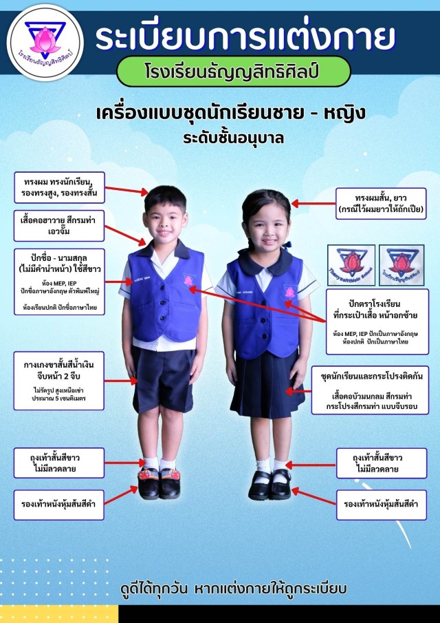 เครื่องแบบการแต่งกายชุดนักเรียนชาย-หญิง ระดับชั้นอนุบาล