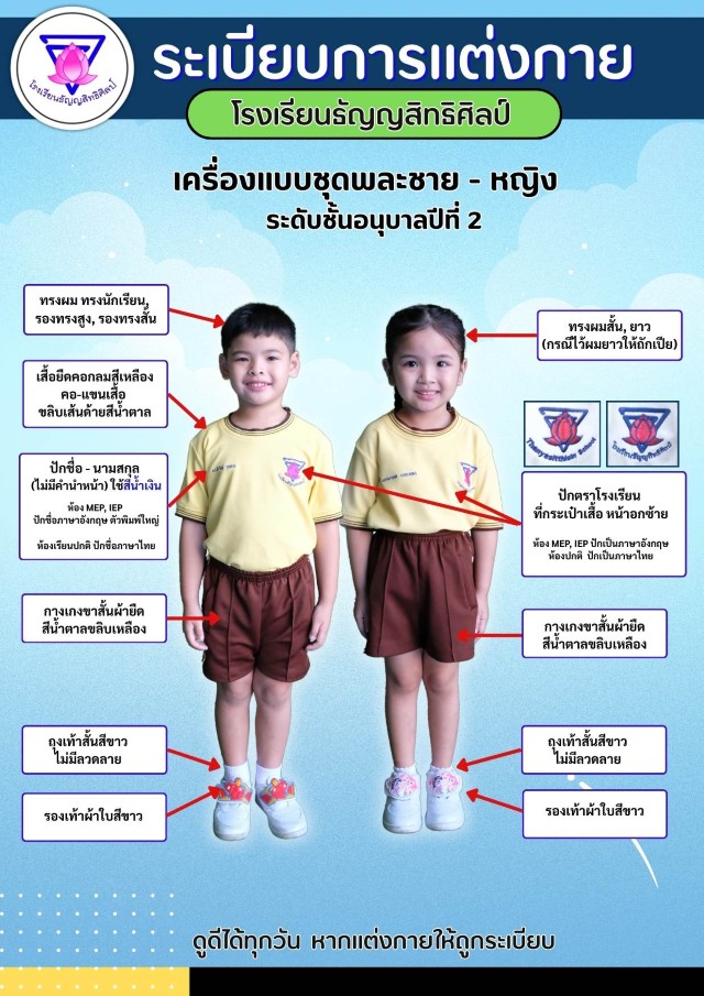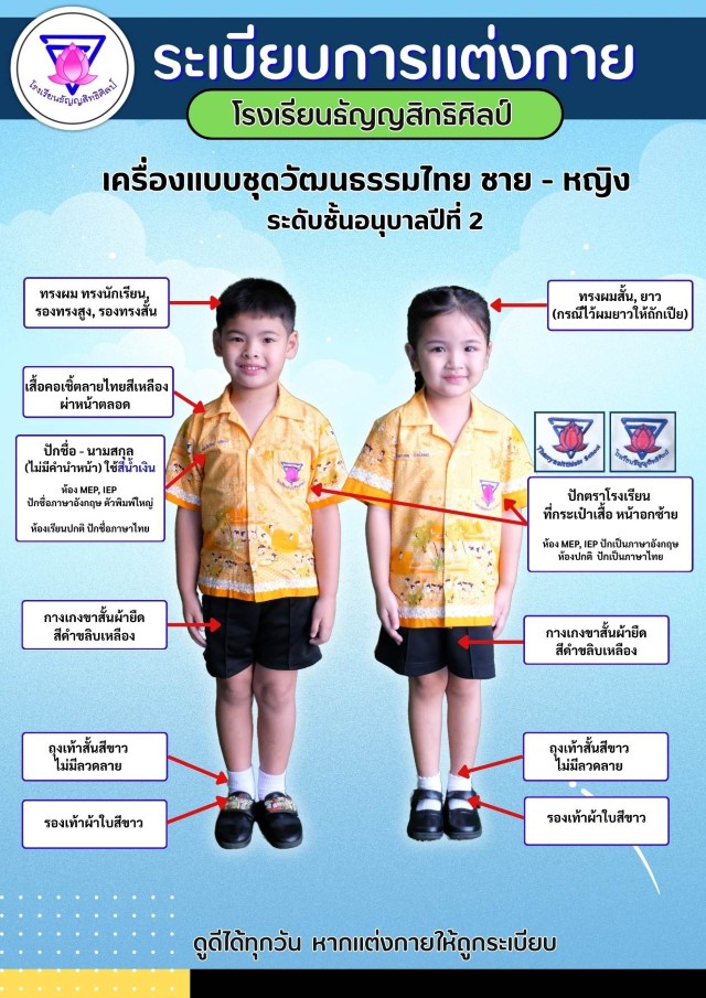 เครื่องแบบการแต่งกายชุดวัฒนธรรมไทยนักเรียนชาย-หญิง ระดับชั้นอนุบาล 2