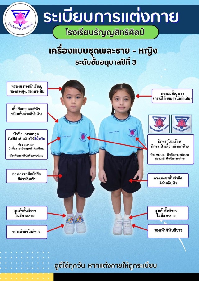 เครื่องแบบการแต่งกายชุดพละนักเรียนชาย-หญิง ระดับชั้นอนุบาล 3