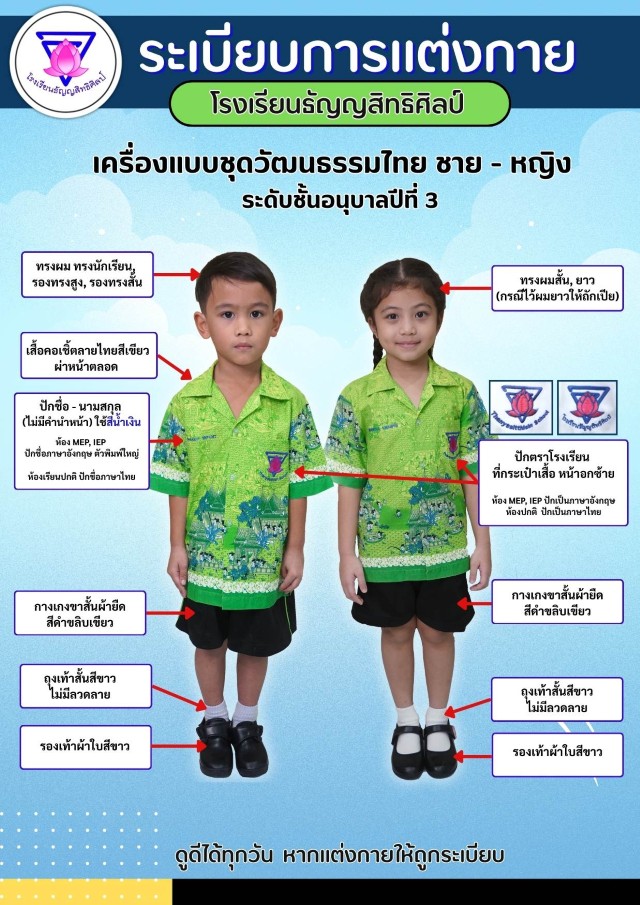 เครื่องแบบการแต่งกายชุดวัฒนธรรมไทยนักเรียนชาย-หญิง ระดับชั้นอนุบาล 3