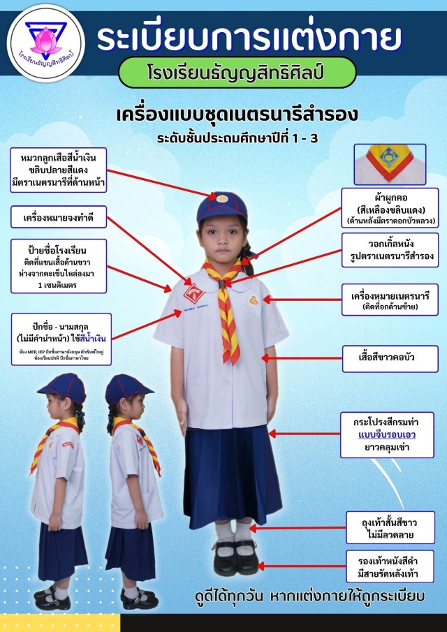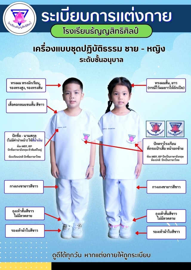 เครื่องแบบการแต่งกายชุดปฏิบัติธรรม นักเรียนชาย-หญิง ระดับชั้นอนุบาล