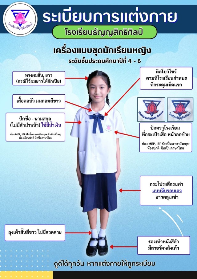 เครื่องแบบการแต่งกาย ชุดนักเรียนหญิง ระดับ ป.4-6